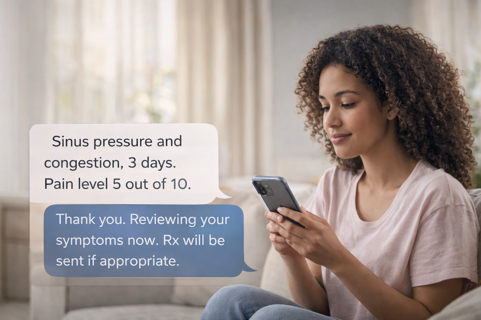 Your provider treats your case and sends your prescription to your pharmacy. You're only billed after your visit is complete or your treatment has been delivered.
